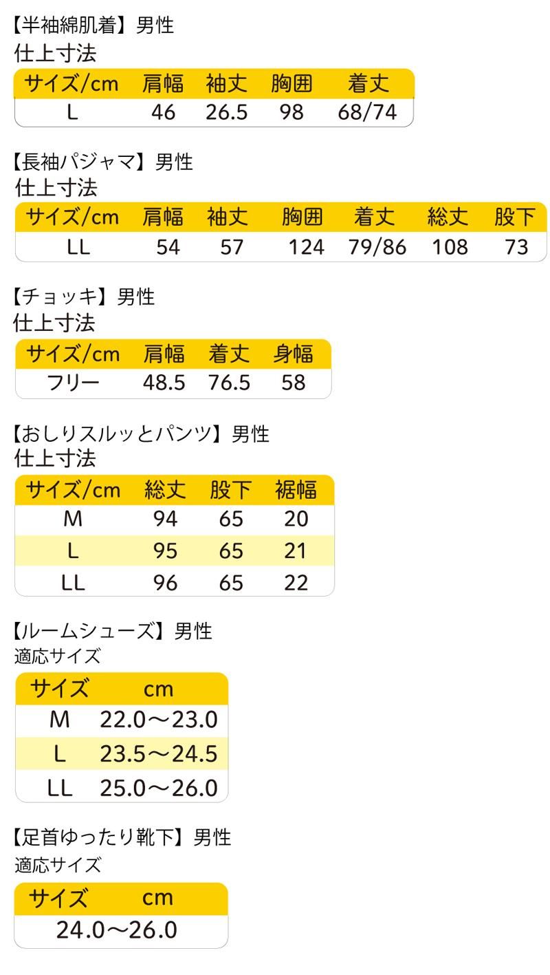 ●綿肌着Lサイズ、パジャマLLサイズとなります(選択不可)